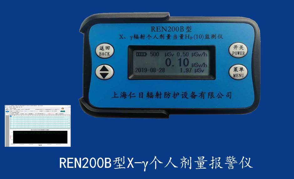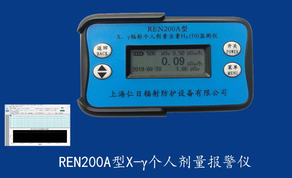 REN200 個人輻射監(jiān)測儀 REN200型X、γ個人劑量報警儀(又叫X、γ輻射個人劑量當(dāng)量HP(10)監(jiān)測儀)內(nèi)置高靈敏度蓋格計數(shù)管為探測器,主要用來監(jiān)測各種放射性工作場所的X、γ以及硬β射線的輻射,具有響應(yīng)快,測量范圍寬的特點。能顯示工作場所的劑量當(dāng)量率和累積劑量,更換電池時,日期及累積數(shù)據(jù)能永久保存。可選配RenRiPersonal個人劑量管理軟件,該軟件可存儲多個人的歷史數(shù)據(jù),能記錄日累積、月累積、年累積、輻照時長、計算平均劑量率、扣除或不扣除本底輻射,且以文字和圖譜的方式展現(xiàn)數(shù)據(jù)。廣泛應(yīng)用于核電站、加速器、鋼鐵、化工、同位素應(yīng)用、醫(yī)院、工業(yè)X、γ無損探傷、放射醫(yī)療、鈷源治療、γ輻照、放射性實驗室、核設(shè)施周圍環(huán)境監(jiān)測